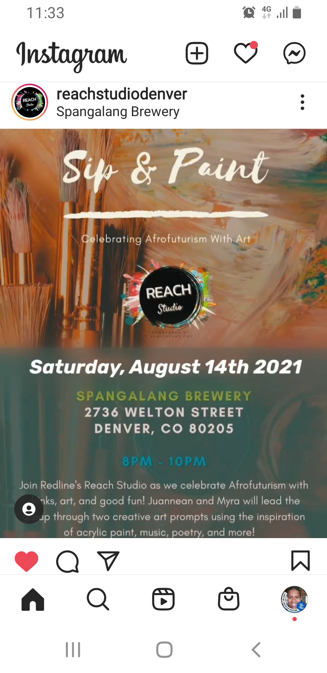 Hello. I co-facilitated a Sip n Paint provided through Reach Studio by Redline Contemporary Art Center. It was located at Spangalang Brewery. The was an event from the 48 Hours of Socially-Engaged Art & Conversation Summit. I was so proud to participate. I did not post my work but it is soon to come. Down below are some pictures I took.