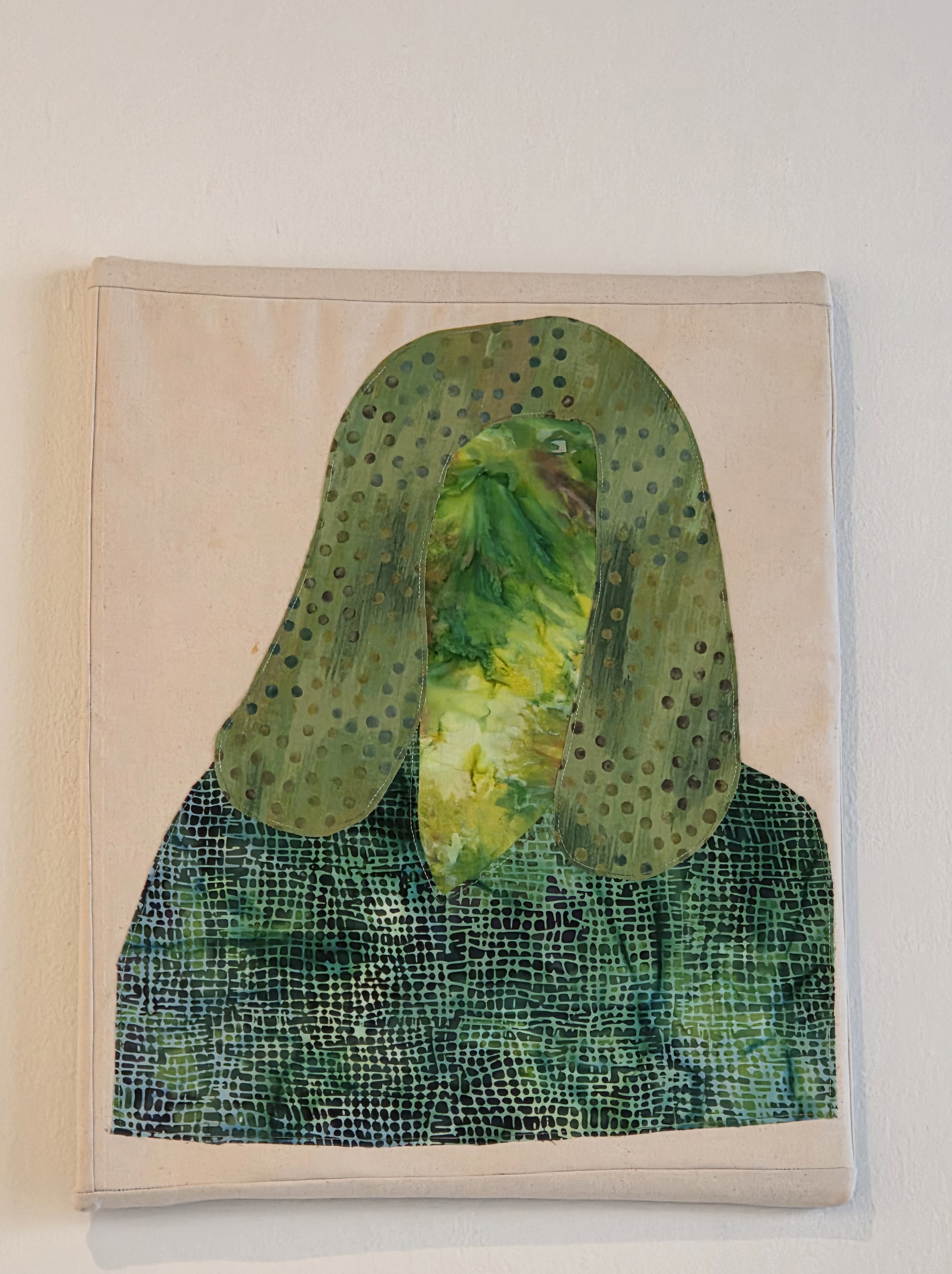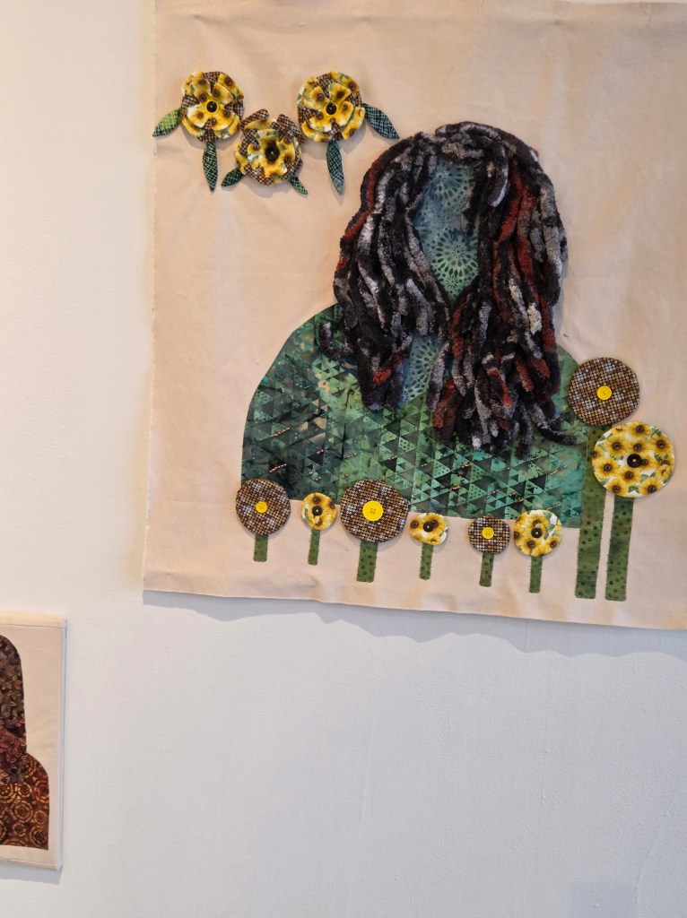 “As an artist, I like using different types of mediums, but fiber is the best. I prefer used or repurposed textiles. In these pieces there are some donated fabrics and new fabrics. My art is a loosely traced version of a selfie that I took of myself. I took this picture because I loved who I was in the mirror. This means I am enough and I don’t need approval.