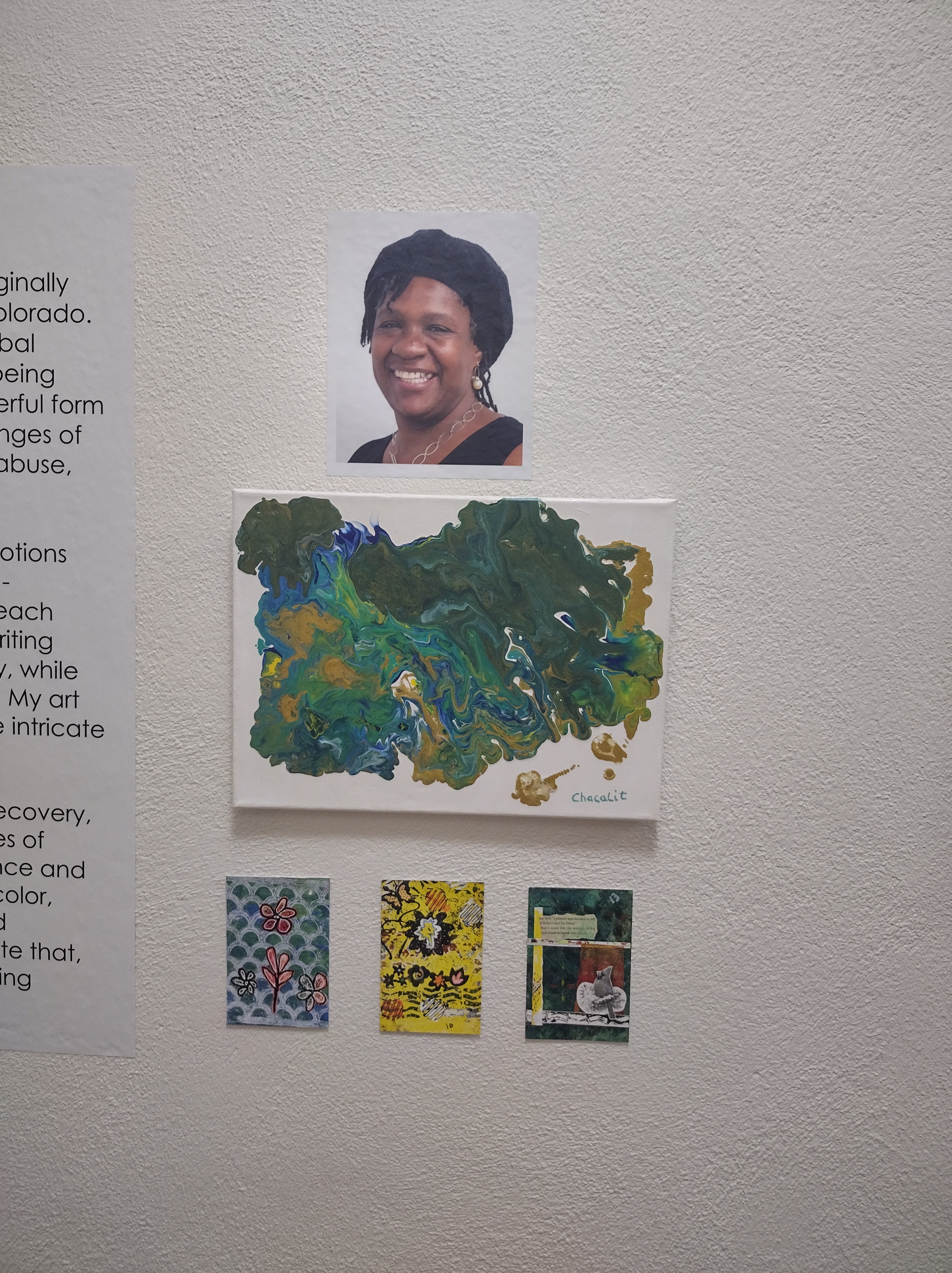I had my first solo show up on the walls of Montview Presbyterian Church since the the beginning of September. I am not show how to feel. They were so kind to allow my work to be on display and give me an opportunity to have myself view.