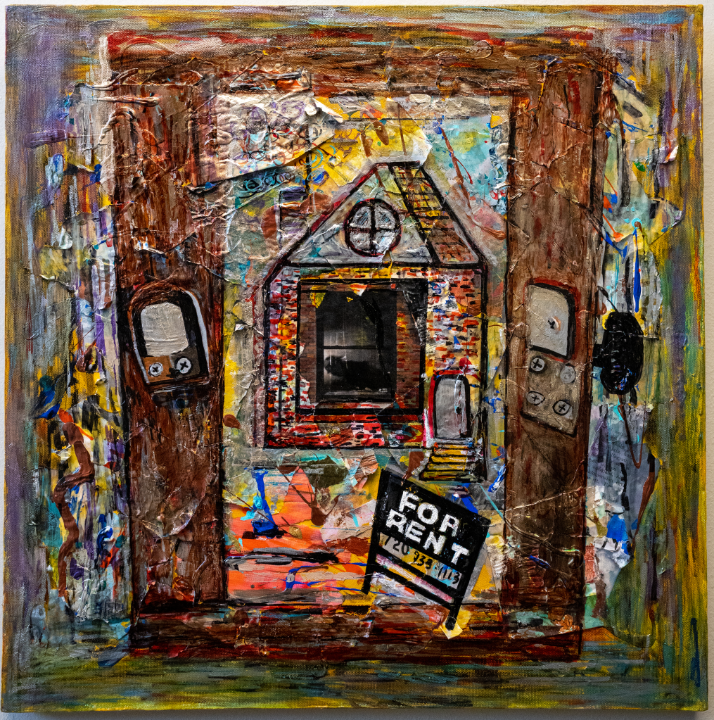 This is a representation of her story before she passed away. Teri lived in a Colorado Coalition for the Homeless building called CCA aka YMCA at the “top of the 16th street mall”. Her boyfriend lived there too but in a separate apartment. She was so talented and vibrant. She also was a Core Reach Artist and Redline Contemporary Art Center. The picture here is from our ACLU exhibition.